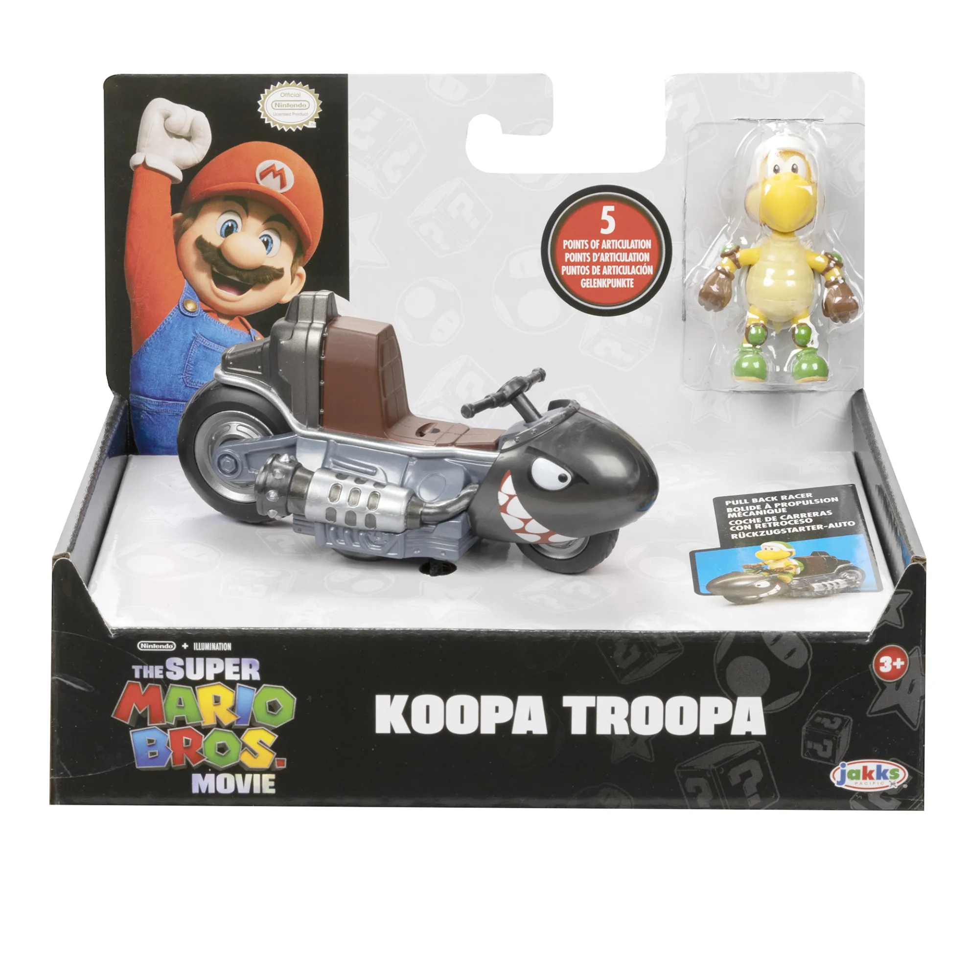 Collect Your Favorite Characters With The Super Mario Bros. Movie 2.5” Figure With Pull Back Racers. Inspired By The Movie, The Koopa Troopa Figure Has Unique Articulation That Allows Him To Sit In His Motorcycle. Pull Back And Watch Him Go! Wave 1 Features Mario, Peach, Toad And Koopa Troopa. You Can Collect Them All!