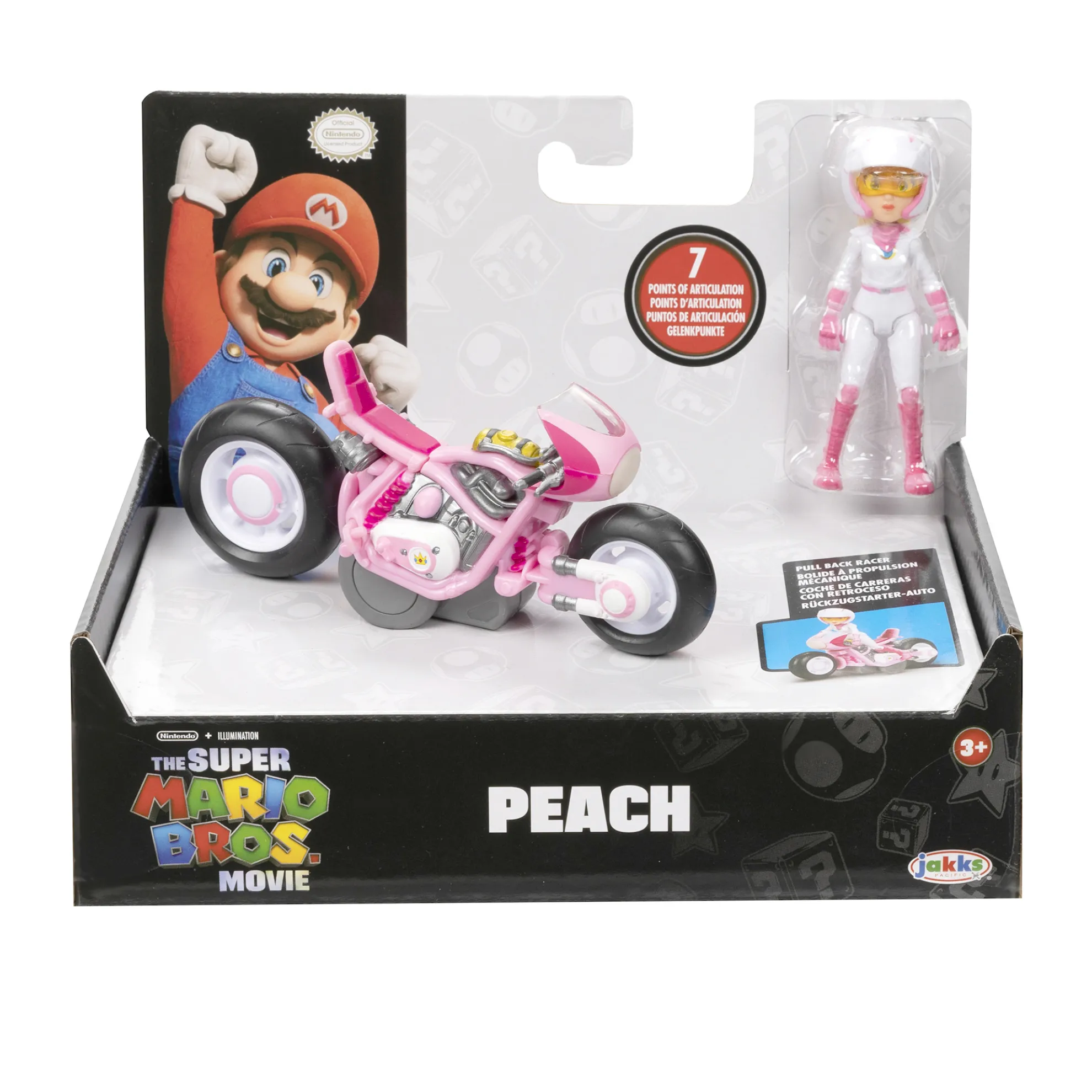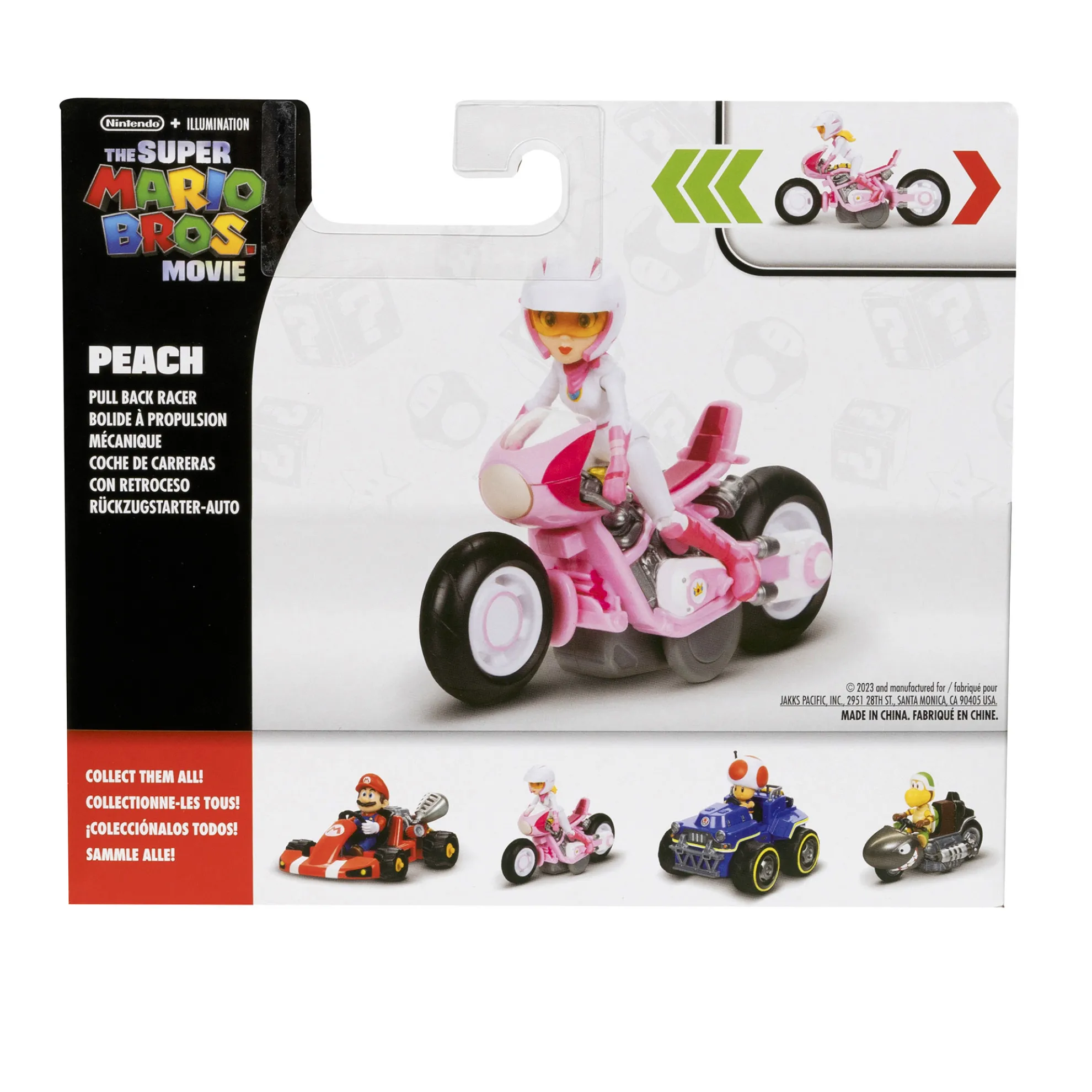 Collect Your Favorite Characters With The Super Mario Bros. Movie 2.5” Figure With Pull Back Racers. Inspired By The Movie, The Peach Figure Has Unique Articulation That Allows Her To Sit On Her Motorcycle. Pull Back And Watch Her Go! Wave 1 Features Mario, Peach, Toad And Koopa Troopa. You Can Collect Them All!