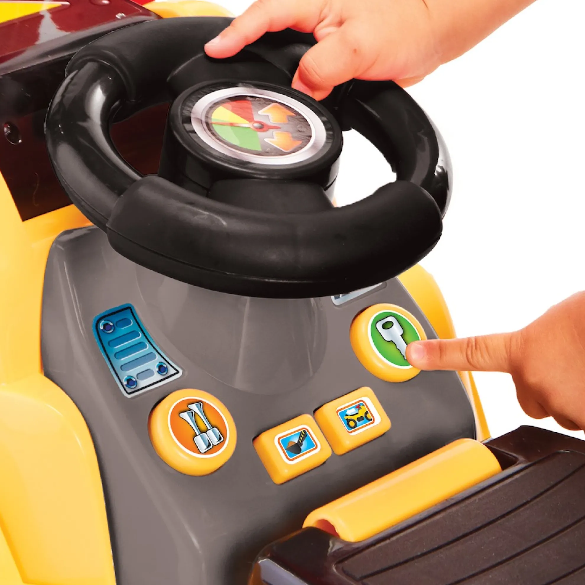 Your Little Operator Will Love This Big Action Dig N Ride Ride-On Toy From Fisher-Price. It Features A Bucket Arm That Really Scoops, Big-Rig Tires, Electronic Construction Sounds At The Touch Of A Button And Under-Seat Storage. Your Child Will Enjoy Controlling This Realistic Ride-On. A Tough Construction Vehicle With Realistic Styling And A Real Working Crane For Loads Of Fun! Dual Control Handles Lets The Child Control The Bucket And Lift And Turn The Crane. Crane Moves Up And Down And Really Scoops. With Realistic Construction Sounds And Durability, This Fully-Equipped Ride-On Is Sure To Provide Endless Hours Of Fun!