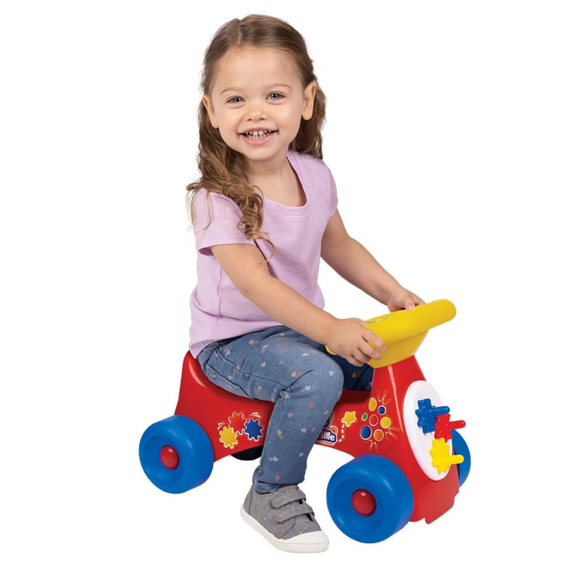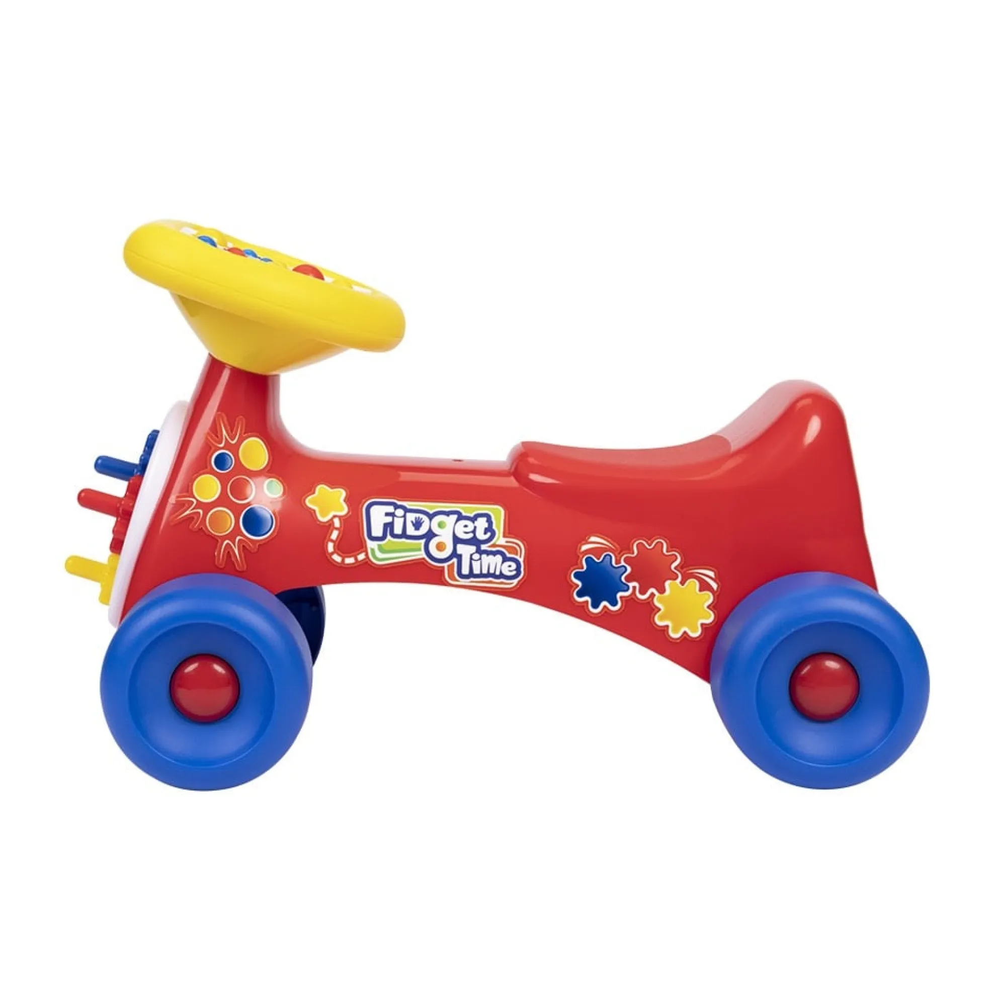 Get Movin’ With The Fidget Time Ride On! This Scoot Along Ride-On Features Four Different Fidget Toys For Endless Interactive Play. Gear Turning Promotes Dexterity And Logic, Pop Toys Provide Calming Stress Relief, Star Maze Develops Hand-Eye Coordinations, And Mirror Encourages Sensory Focus. Engaging Activities Are Sure To Keep Your Little One’S Mind Free And Hands Busy. Easy Grip Handlebars Make Riding Safe And Comfortable For Your Child. Designed With Extra Wide Wheels For Added Stability On All Surfaces And Bright Graphics, This Is The Perfect Mode Of Transportation For Your Child. Easy Assembly With No Tools Required. Recommended Weight Limit Of 35 Lbs (15.8Kg). Ages 1-3.