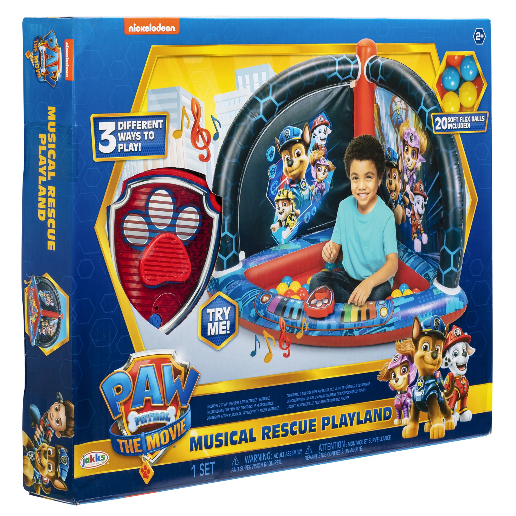 Marshall And The Rest Of The Hero Pups Are Ready For Their Day Of Fun In The Paw Patrol Movie Musical Rescue Playland! With The Touch Of A Button, Hear Some Awesome Voices And Sounds. Including 20 Soft Flex Balls And An Interactive Electronic Music Mat, The Fun Never Ends. The Electronic Music Mat Includes Three Different Ways To Play And Marshall’S Voice To Follow Along To. Bright Graphics Will Keep Children Entertained With Lots Of Imaginative Fun. Sing Along, Toss, And Play With Paw Patrol Friends! Adult Assembly And Supervision Required. Requires 2 X Aa Batteries (Included). Approximate Inflated Size: 38 In D X 53 In W X 36 In H